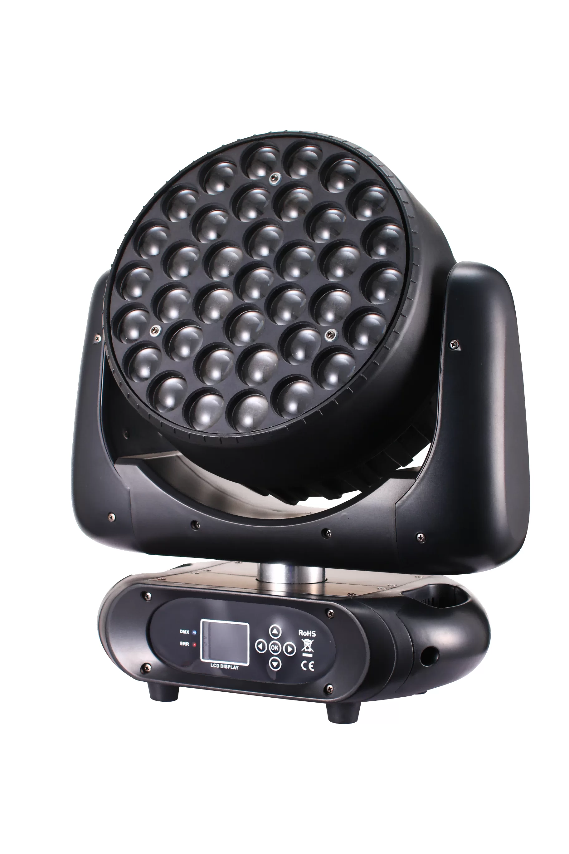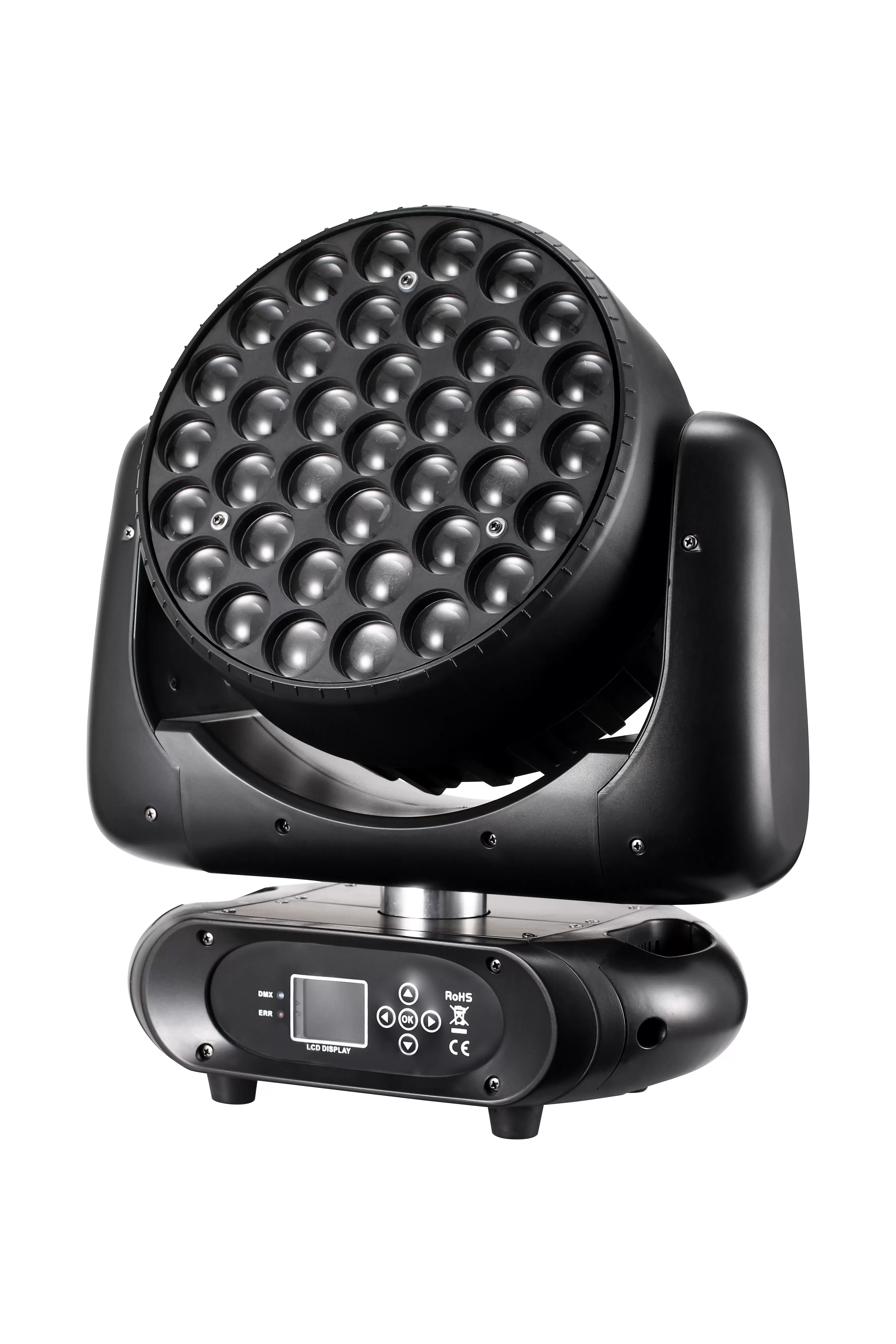 RGBW (red, green, blue, white) linear color mixing, 16.7 million colors (0-100% saturation adjustable), built-in macro functions. 10-60 DMX linear focusing with automatic focusing function. Screen automatic rotation function.